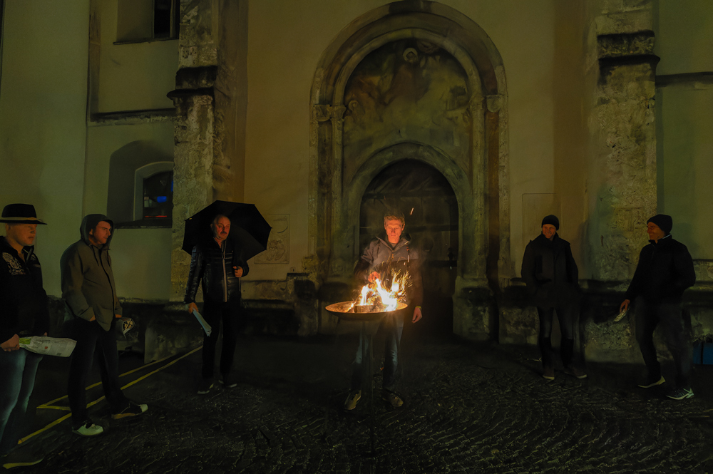 In einer kurzen Regenpause begann die Feier der Osternacht beim Osterfeuer vor dem Seiteneingang der Kirche. Die neue Osterkerze wurde am gesegneten Feuer entzündet. Dieses Licht brachten die Ministrantinnen und Ministranten nach dem zweiten "Lumen Christi" an die Gottesdienstgemeinde aus.