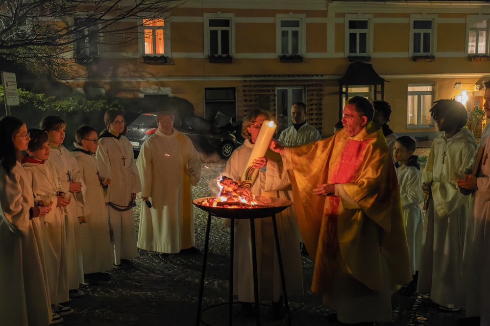 Vom Dunkel zum Licht: Die Feier der Osternacht lässt den Übergang von der dunklen Trauer des Karfreitags zur hellen Freude der Osterbotschaft miterleben.