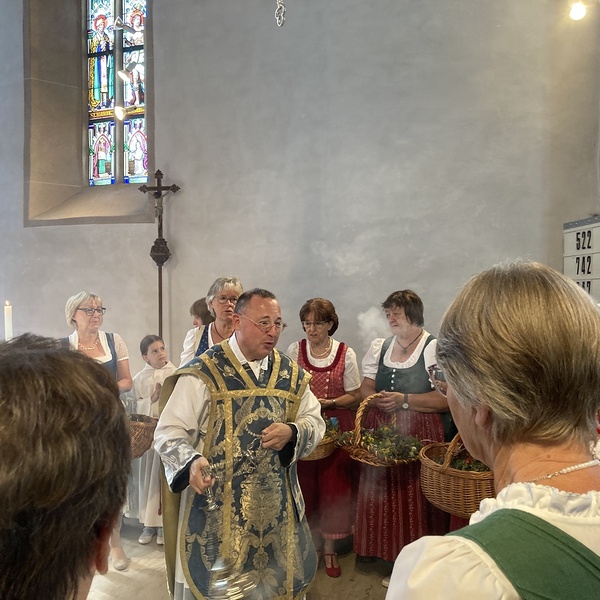 In der Pfarre Nußbach werden am 15. August - Maria Himmelfahrt - traditionell die von der Goldhauben- und Trachtengruppe gesammelten und gebundenen Kräuter geweiht und verteilt. Nach den Gottesdiensten war auch heuer wieder zum Pfarrkaffee eingeladen.