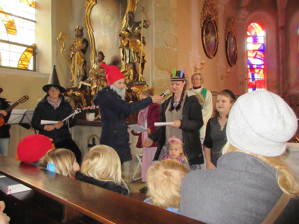Da es der letzte Sonntag vor dem Faschingsdienstag war, durften alle Kinder verkleidet kommen. Natürlich verkleidete sich auch das Kinderkirchenteam. Es waren ein Zauberer, ein Indianer, ein Pirat und eine Prinzessin dabei. Diese haben uns zu Beginn unserer Feier erzählt, warum sie sich so gerne im Fasching verkleiden. Weiters besuchte uns ein Clown, der gerade dabei war, die Freude zu suchen. Natürlich hat er diese bei einer so lustigen Runde gefunden. Gemeinsam wurde noch gesungen und gelacht. Als Überraschung für die Kinder wurden sie beim Verlassen der Marienkirche mit vielen Seifenblasen überrascht. Diesmal waren es viele Kinder und Eltern, die mit dem Lied „Viele,viele Gäste,...“ in die Pfarrkirche eingezogen sind.