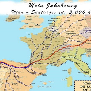 In sechs Jahres-Etappen gingen die beiden durch ganz Österreich, die Schweiz, Frankreich und schließlich über die Pyrenäen durch ganz Spanien zum Zielort Santiago de Compostela.
