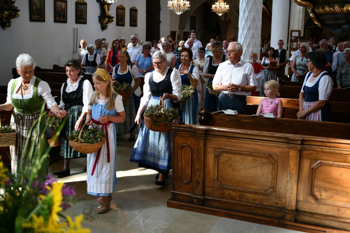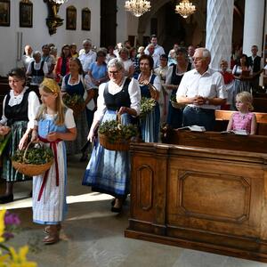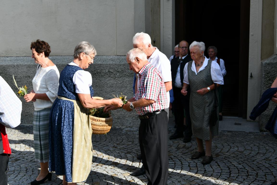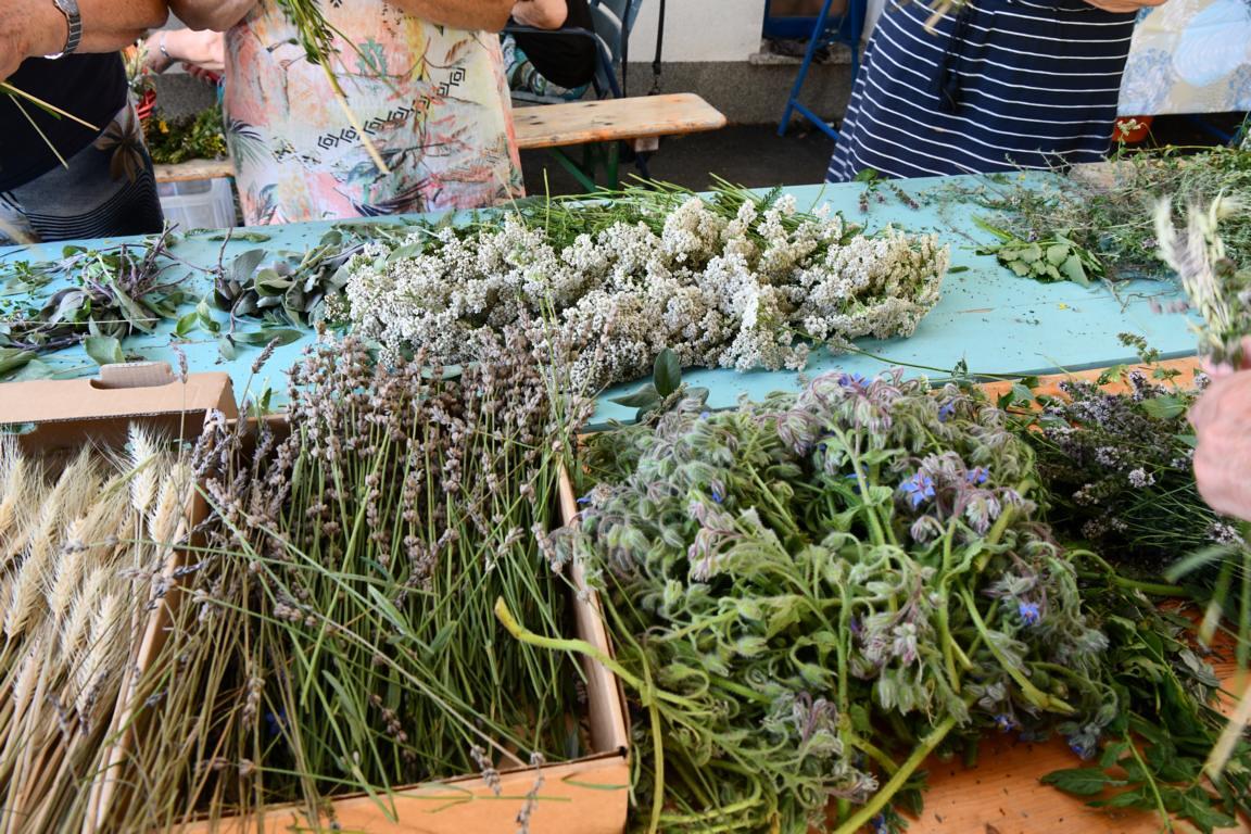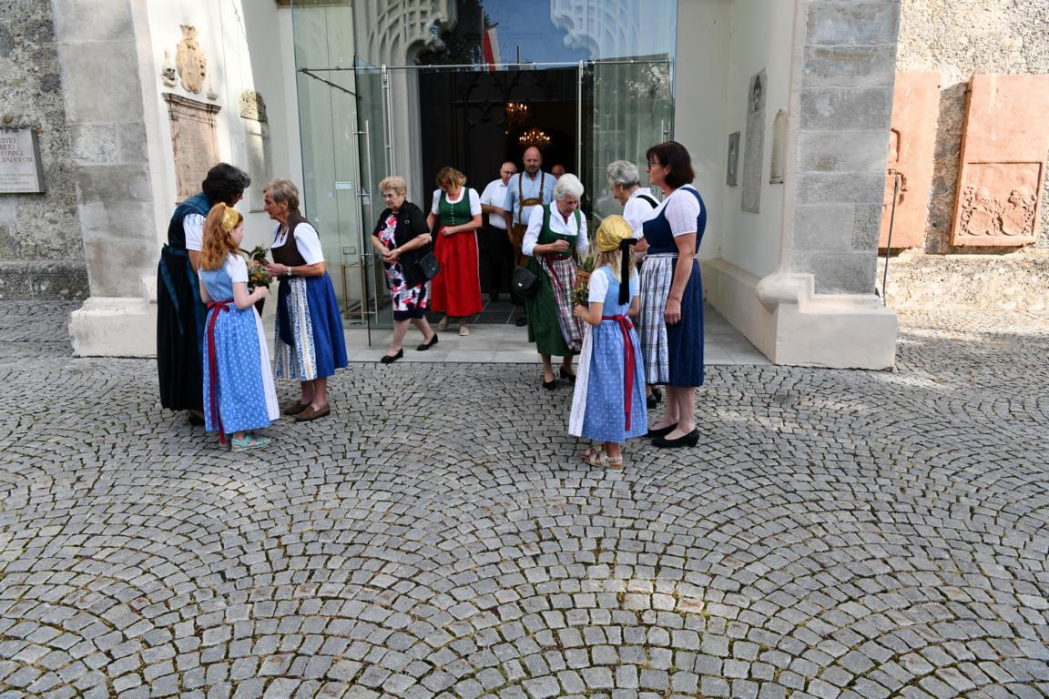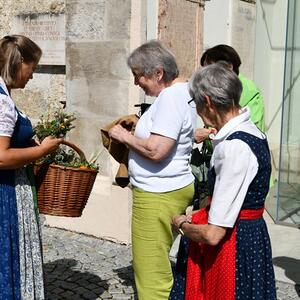 Mit dem sommerlichen Marienfest ist auch das Brauchtum der Kräuterbüscherl verbunden, das in Vöcklamarkt von den Goldhaubenfrauen gepflegt wird. Gezählte 450 Stück haben sie heuer gebunden und bei den beiden Gottesdiensten durch Pfarrer Johann Greinegger segnen lassen. Anschließend wurden die wohlriechenden Büscherl an die Mitfeiernden verteilt, damit sich diese den "Geruch des Festes" mit nachhause nehmen konnten.